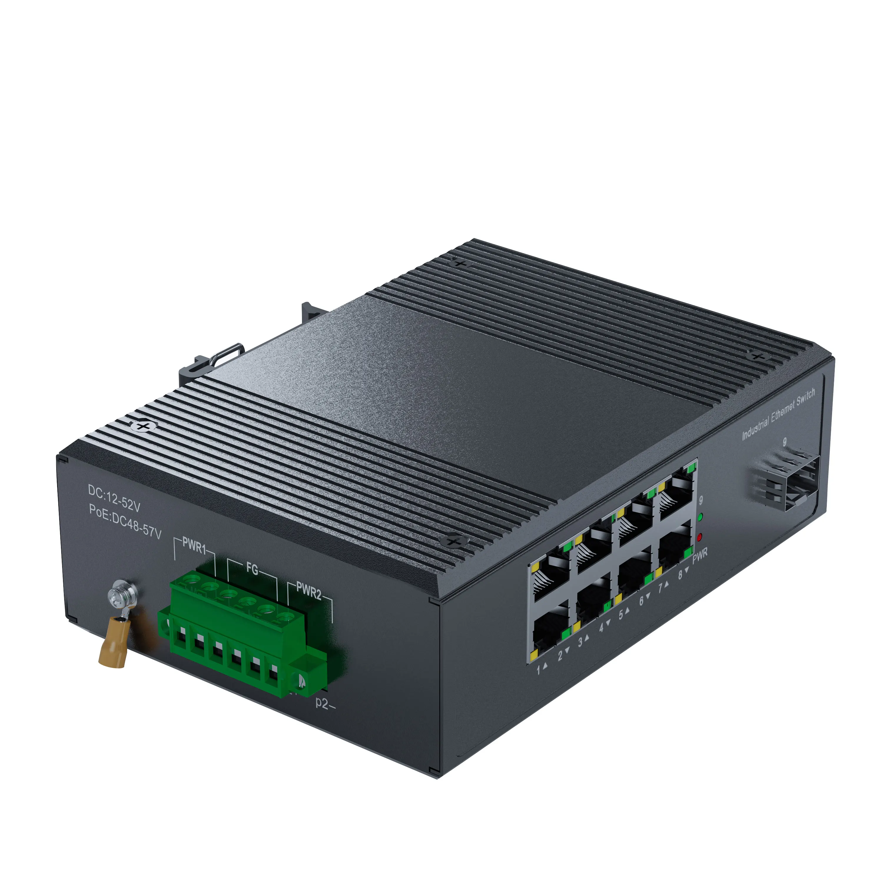 Power indicator: PWR (red light) Open mouth indicator: 9 (green) Port indicator: Yellow (Link/ACT) / Green (PoE) |