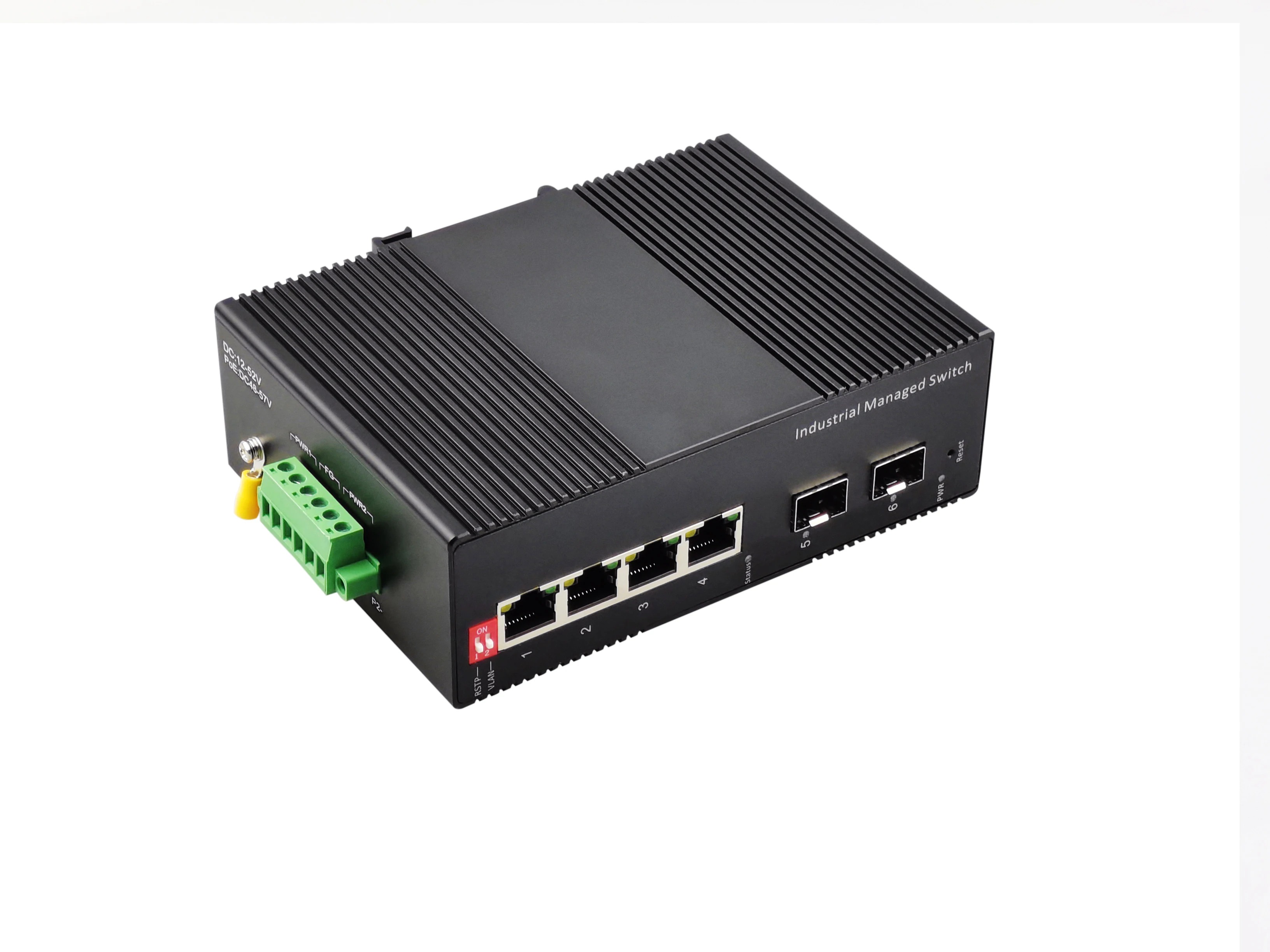 Input voltage: DC12-52V (non-PoE) Connection terminal: 6-core 5.08mm spacing wiring terminal Support dual power redundancy Support reverse protection |